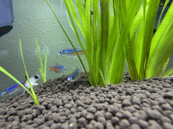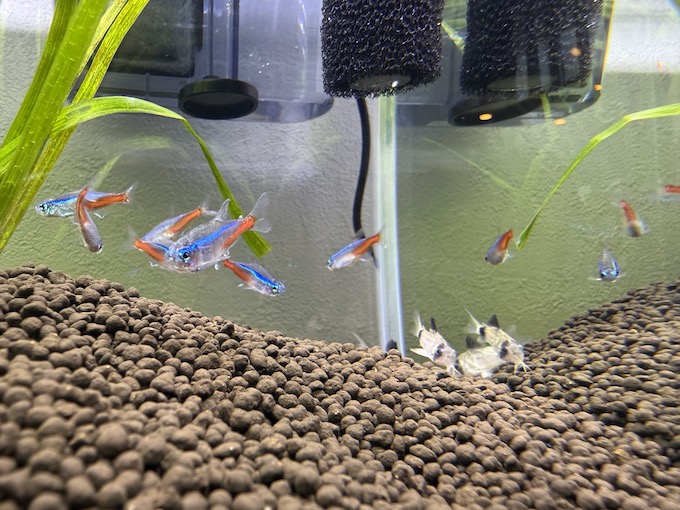 アクアリウムに生体を入れてから1週間が経とうとしていますが、妻曰く、僕の帰りが遅い時に息子が嬉しそうに水槽を眺めているみたいです。また、帰宅後に息子と一緒に最中に餌をあげるのがルーティンになっており、親子の共通の話題が1個増えたと感じています。