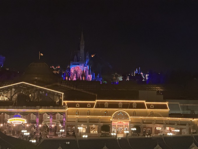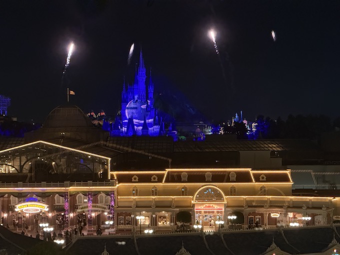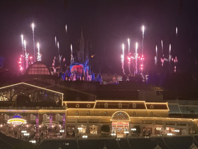 視覚情報はプロジェクションマッピングと派手な花火、聴覚情報は「右から2番目の星(めちゃバラード)」というチグハグな楽しみ方をできるのはディズニーランドホテル宿泊者の特権かもしれません。笑