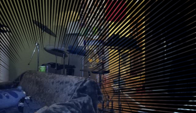 旧居(田舎のただ広い部屋)なので広く見えますが後ろのドラムセットと見比べていただければ、いかに僕の快適な1Kを侵していたか察していただけると思います。
